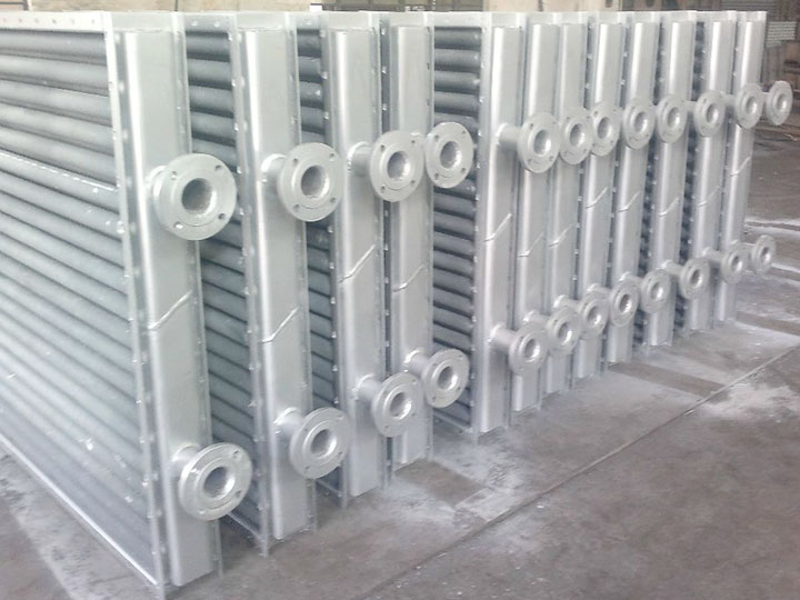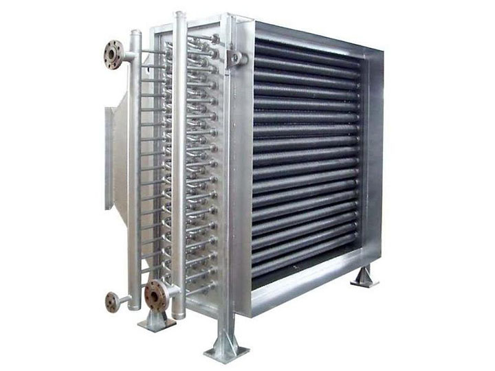 翅片式換熱器主要用于干燥系統(tǒng)中空氣加熱,是熱風裝置中的主要設備,散熱器采用的熱介質可以是蒸汽或熱水,也可用導熱油,蒸氣的工作壓力一般不超過0.8Mpa,熱空氣的溫度在150℃以下。