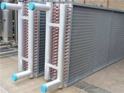 翅片式換熱器因采用機械繞片,散熱翅片與散熱管接觸面大而緊,傳熱性能良好、穩(wěn)定,空氣通過阻力小,蒸氣或熱水流經鋼管管內,熱量通過緊繞在鋼管上翅片傳給經過翅片間的空氣,達到加熱和冷卻空氣的作用。