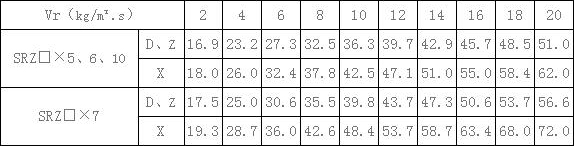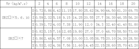表1、SRZ空氣熱交換器(散熱器)熱媒為蒸汽時(shí),在不同空氣重量流速下的傳熱系數(shù)K(kcal/m2.h.℃)